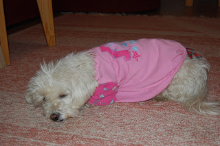 Merry oli sterilisaatioleikkauksessa 16.4. Olin suunnittellut sterilisaatiota Merrylle pidemmän aikaa ja nyt ajankohta tuntui sopivalle. Edellisestä juoksustakin oli kulunut jo sopivasti aikaa. Itse leikkaus meni hyvin, Merry oli aika kipeä torstai-illan ja perjantain, mutta lauantaina olikin jo oma itsensä. Merryllä ei onneksi paljoa tarvinnut kauluria pitää, vaan pärjättiin hyvin pikkusiskoni vanhoilla t-paidoilla. Tikit poistettiin maanantaina 27.4, mutta haava oli hieman tulehtunut pinnalta ilmeisestikin tikit olivat ärsyttäneet ihoa. Merry sai uuden antibiootti-kuurin ja nyt haava näyttääkin jo siistille. Pian pääsee taas jo kunnolla lenkkeilemään!