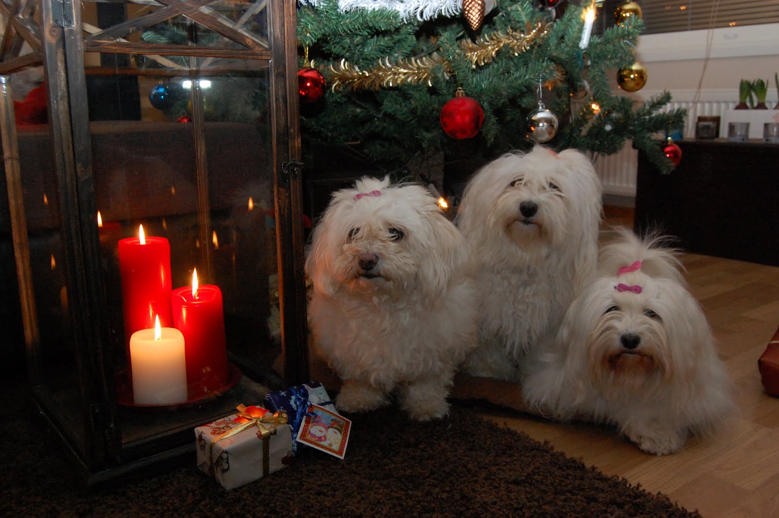 Joulun aikaan olen itse töissä, mutta aattoa ja joulupäivää vietetään tänä vuonna Anjalankosken suunnalla. Uudeksi vuodeksi olisi tarkoitus suunnata Keski-Suomeen päin. Koirat ovat kovasti kiinnostuneita paketeistaan, olisivat avanneet jo ennakkoon :) Aattona saavat sitten vingutella ja herkutella koko porukka :) Omistajat mukaan lukien.. ;)