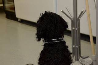 Odessan ensimmäinen eläinlääkäri-reissu meni hyvin. Neiti oli reipas oma itsensä, lääkäri-täti ihana ja häntä heilui taukoamatta. Rokotusta Odessa ei huomannut ollenkaan ja aivan yllätyin miten hyvin Odessa antoi tutkia itsensä. Kotona kun tutkitaan esimerkiksi hampaita niin menee kaikki leikiksi. Mitat neidillä nyt 12vk iässä, 7,8kg ja korkeutta noin 36cm.