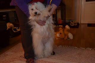 Illalla sitten vuorossa koirien laitto seuraavaksi päiväksi Turun näyttelyä varten. Omista koirista Mimosa oli vain turisti-reissulla mukana, Viola Marjon luona yökylässä ja muut tytöt Harrin kanssa kotona.