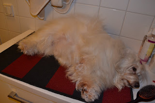 Odotusaika on pääasiassa mennyt Violalla hyvin, aluksi Viola oli hyvin hellyydenkipeä ja omanarvonsa tunteva. Ja piti Odessaa tiukassa kurissa... Sitten Violalle tuli pahoinvointi-päivät ja siitä oikein näki, miten huonovointinen se oli aamuisin. Ruokahalu on koko ajan ollut hyvä ja nyt pari viikkoa Viola on syönyt jo penturuokaa normaaliruuan seassa. Koko ajan Viola on liikkunut lenkeillä mukana eikä jatkuvasti kasvava mahakaan hidasta menoa.
