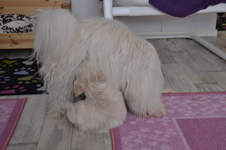 Harmiksemme Papilla todettiin leikkausta vaativa tyrä. Papi jää Marjolle kotiin kasvamaan tarpeeksi isoksi leikkausta varten, sillä narkoosiriski on näin pienelle pennulle vielä suuri. Ennuste kuitenkin on tällä hetkellä hyvä ja Papi jää lellittely-pennuksi sukulaiskoirien kanssa kun Viola parin viikon päästä kotiutuu.