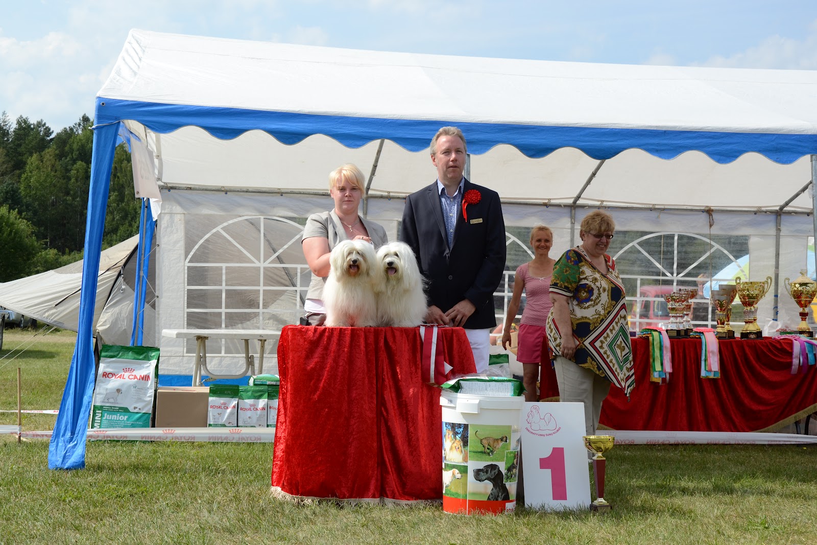 Sunnuntaina lämpötila kohosi taas reilusti yli +30 asteen, vuorossa oli kääpiökoirien erikoisnäyttely ja havaneesit arvosteli Hollantilainen Hans Boelaars. Omista tytöistäni jätin Mimosan pois kehästä sunnuntaina, jotta Violalla olisi paremmat mahdollisuudet sertiin. Pojilla meni taas loistavasti, Notte pu1 ja Väinö pu2, Viola oli ainoa aikuinen narttu ( Liettualaiset koirat eivät olleet paikalla) ja sai onneksi erin ja sertin joten saatiinhan siitä Violastakin uusi Liettuan valio ja samalla Balttian valio! Notte palkittiin ROP:ksi ja Viola oli VSP. Isoissa kehissä Viola ja Notte osallistuivat pari kisaan ja petrasivat lauantaina sijoituksesta hieman sijoittuen upeasti BIS1 pariksi! Upea viikonloppu kaikinpuolin. Tutustuttiin uusiin ihmisiin, joita varmasti tapaa jatkossakin kehien laidoilla.